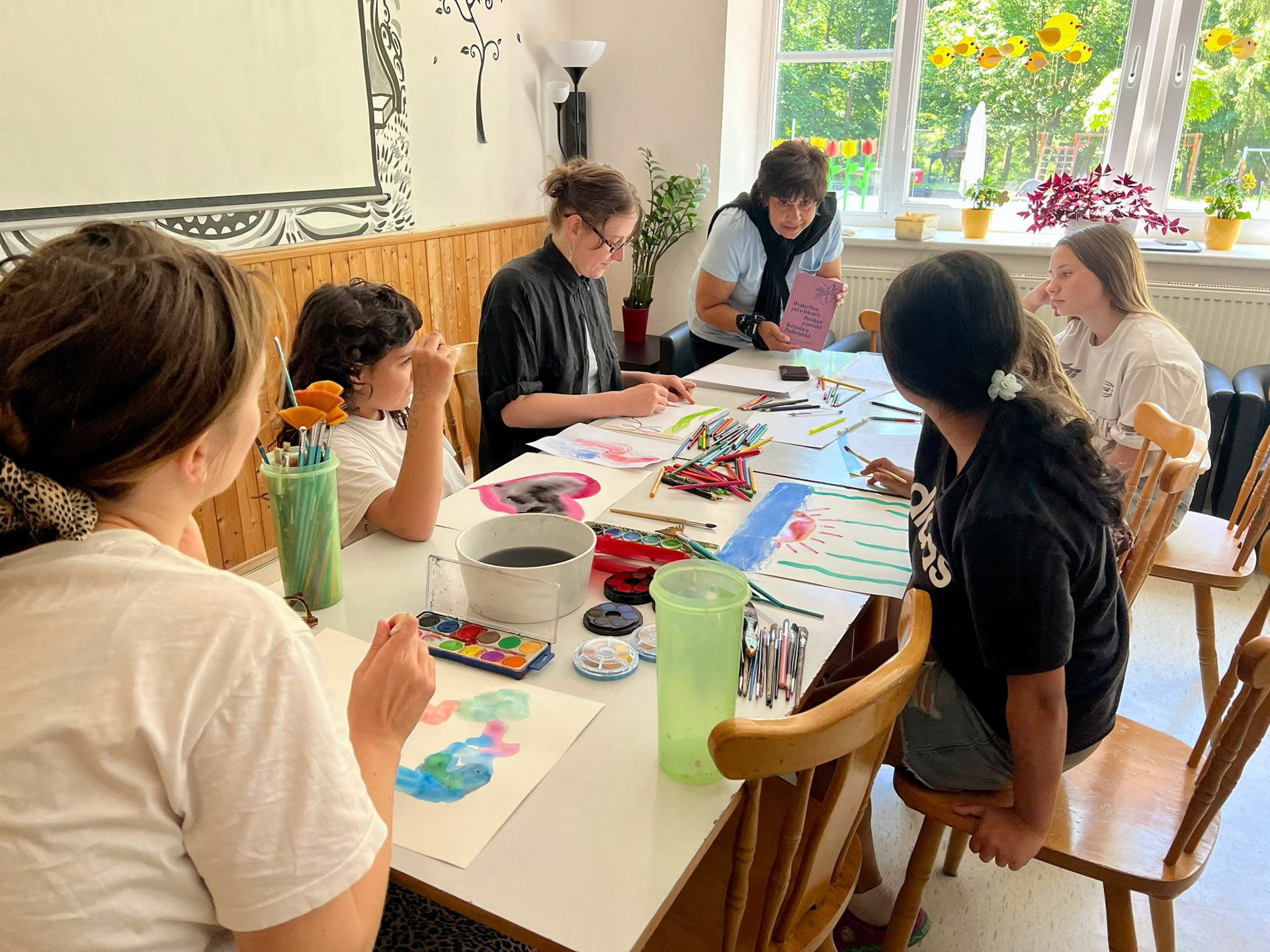 Jedna rozměrná malba, kde se tři rukopisy přetavují v jeden společný. Pomyslný návrat do středověké dílny, kde se na jednom formátu podepisuje mnoho rukou. Vedeme dynamický dialog a ten je pokaždé jiný. Krajinný motiv, symbolický předmět nebo barevný tón je při malování naší fresky stejně podstatný jako zvolený rytmus. Naší malbou se snažíme vyjadřovat pocit z prostoru. Plánovat, ale ne za každou cenu. Omítka rychle schne a my rychle jednáme.