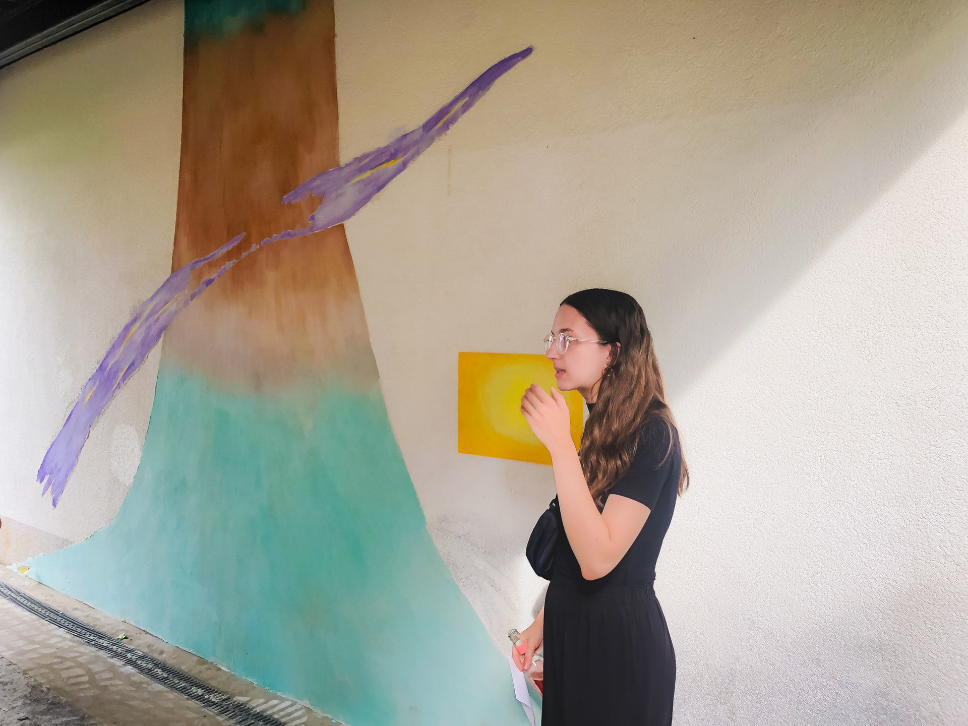 Realizace fresky na boční zeď Kina Art vznikla ve spolupráci s Annou Banánou. Oslovil nás kurátor a kamarád Mirek Meixner z Galerie Art, který postupně oslovoval členy spolku GRAU kolektivu (https://graukollektiv.org/) aby vystavili svou aktuální tvorbu. Ze společného skicování nám vykoukl motiv nekonečného plátna- pozadí, světelný kotouč i protínající letící šíp.