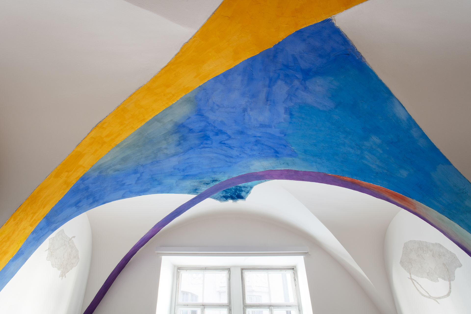 Stropní freska v místnosti, která je součástí zázemí Galerie TIC v Brně na Radnické ulici. Momentálně v této místnosti naleznete knihkupectví s uměleckou literaturou Bookstore ArtMap. Freska zde vznikla, aby tento prostor zušlechtila a zabydlela. Potřebu prosvítit toto místo jsme dál vyvážily monochromními štukovými znaky, které jsme zanechaly v šedých tónech na přilehlých stěnách.